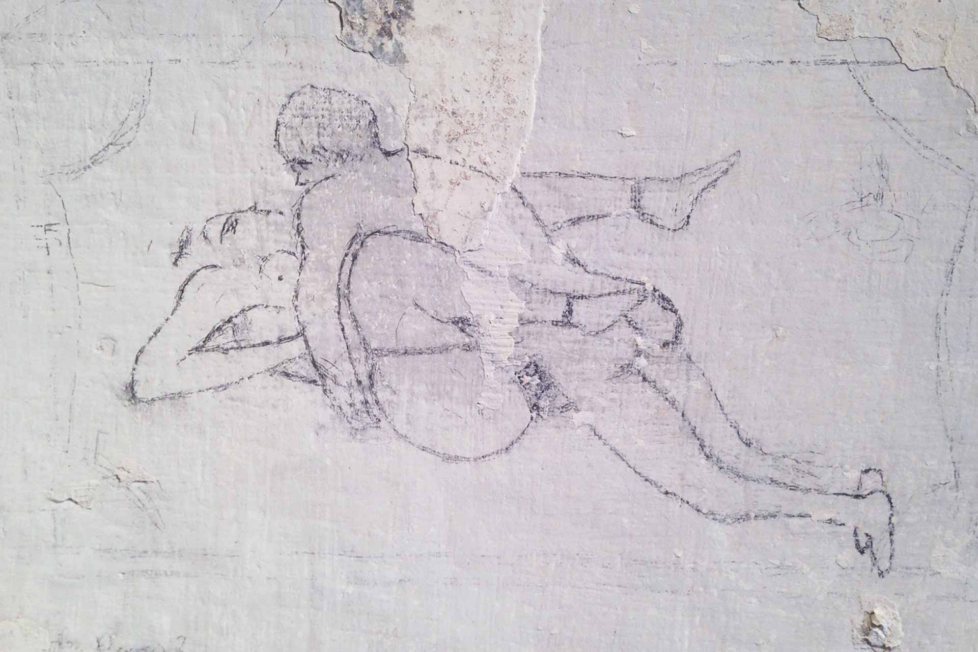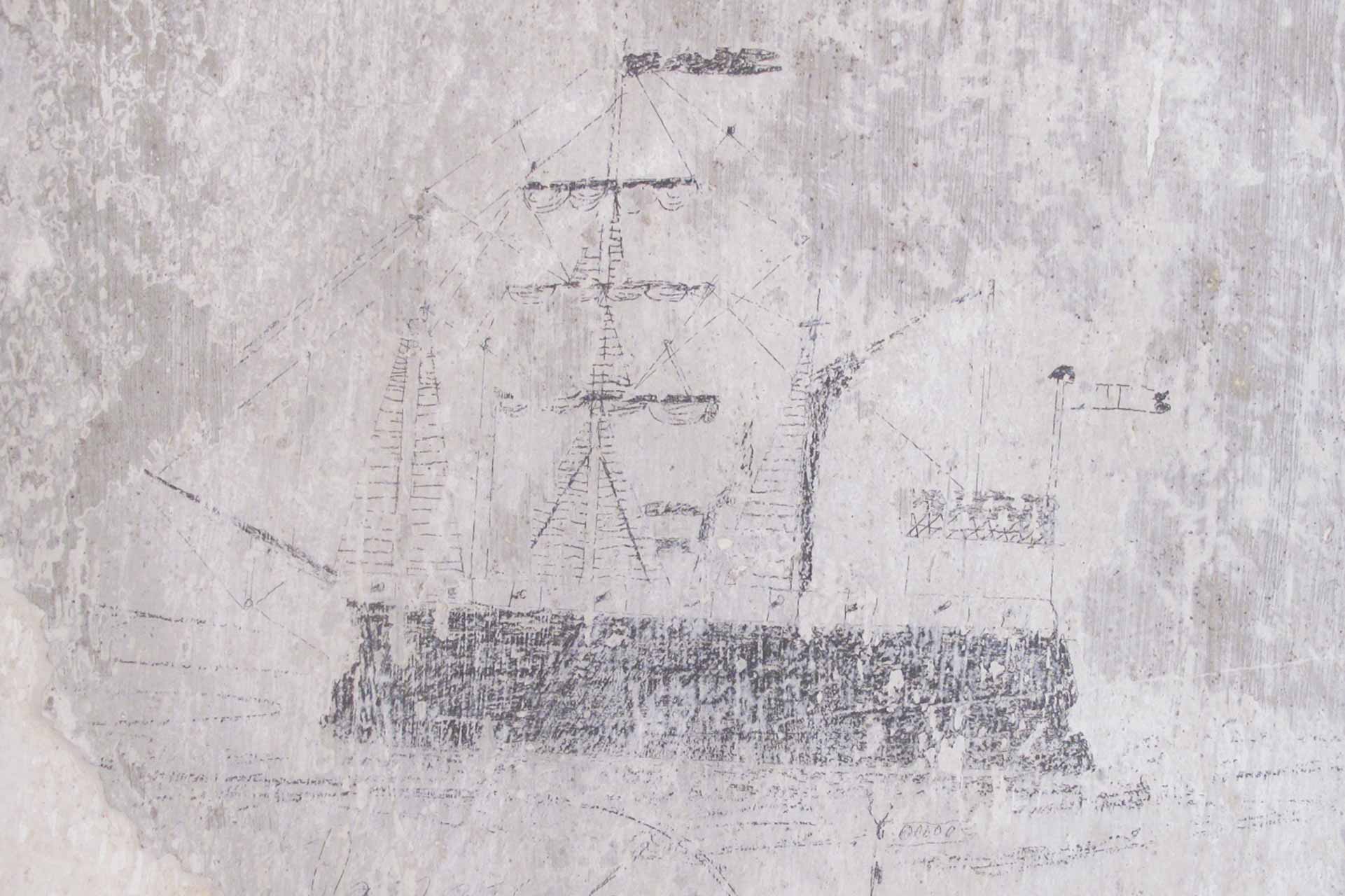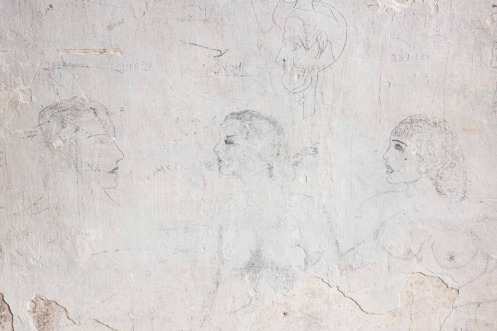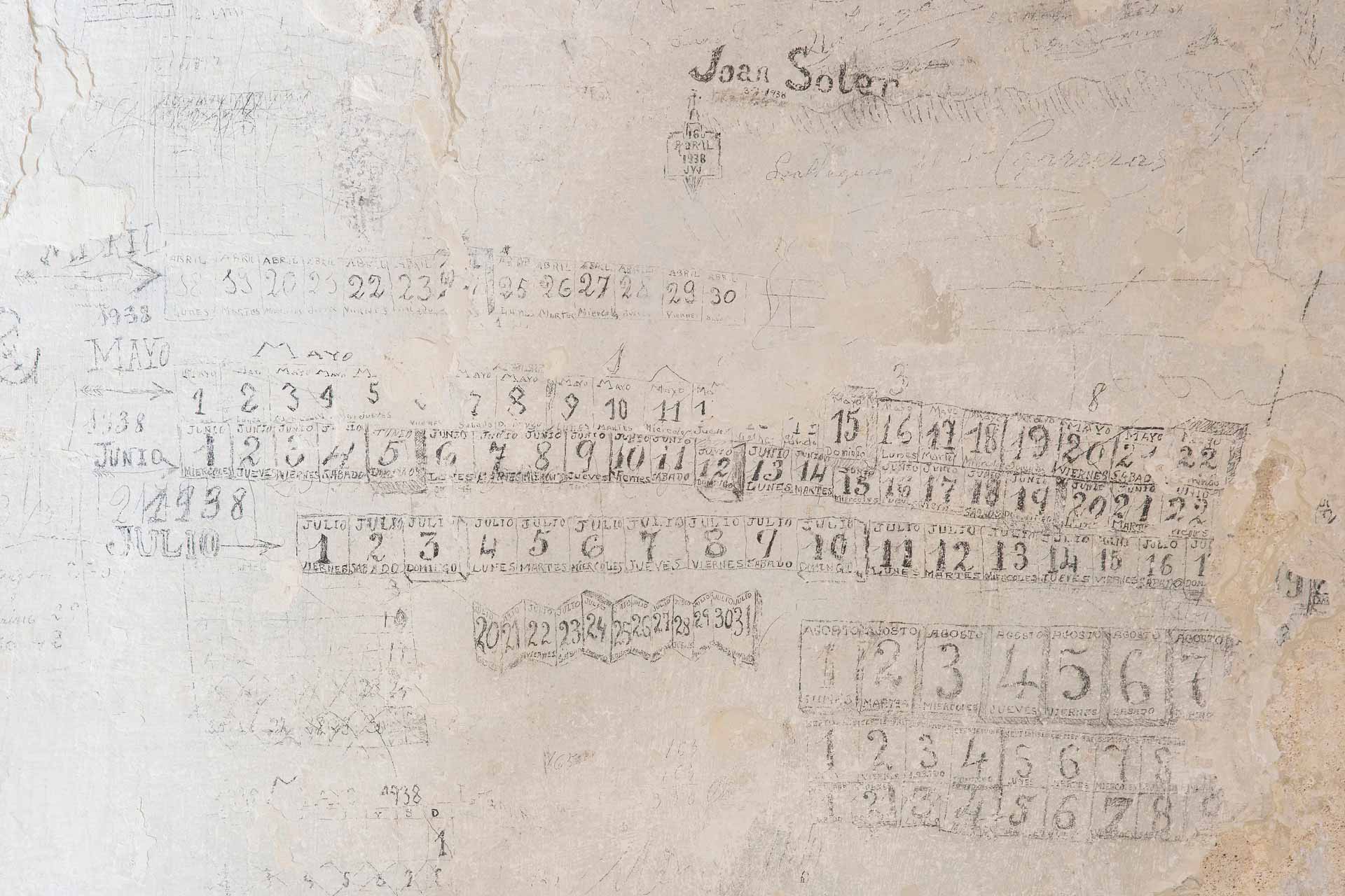 Cales de prospecció, descobriment, restauració i manteniment dels revestiments murals dels calabossos del Castell de Montjuïc. Sota les diverses capes de pintura i emblanquinats dels paraments, s’hi ha localitzat una gran quantitat de grafits, realitzats amb llapis de grafit o per incisió. Són dibuixos realitzats pels presos, principalment durant la Guerra Civil i la immediata postguerra, encara que en estrats subjacents també s’hi detecten grafits de mitjans i finals del segle XIX. Hi trobem inscripcions relatives als empresonaments, signatures, poemes, fulls de calendaris, dates i dibuixos variats (rostres, vaixells, animals, figures de guàrdies civils i escenes eròtiques), que constitueixen un testimoni inequívoc sobre la vida als calabossos.