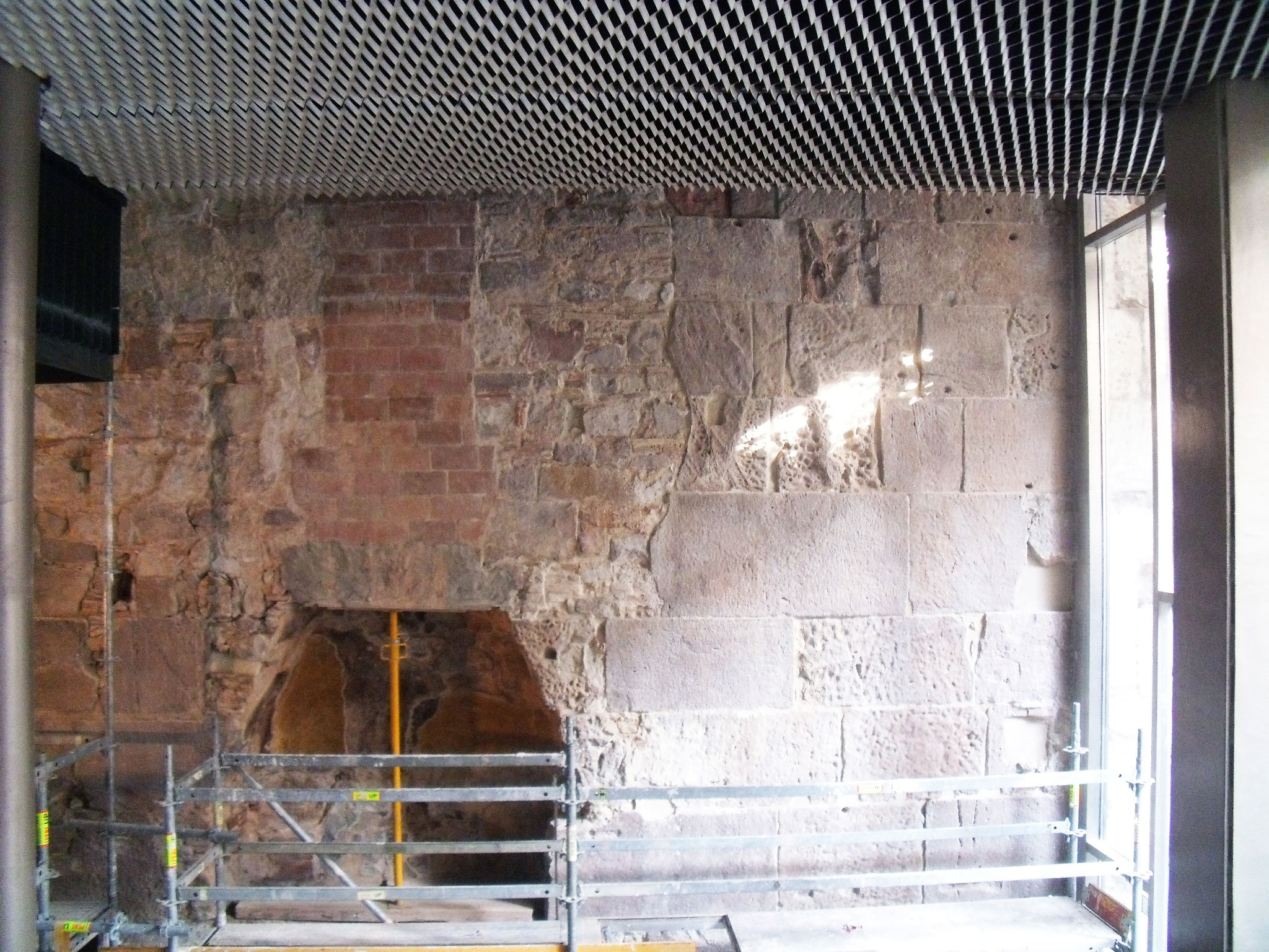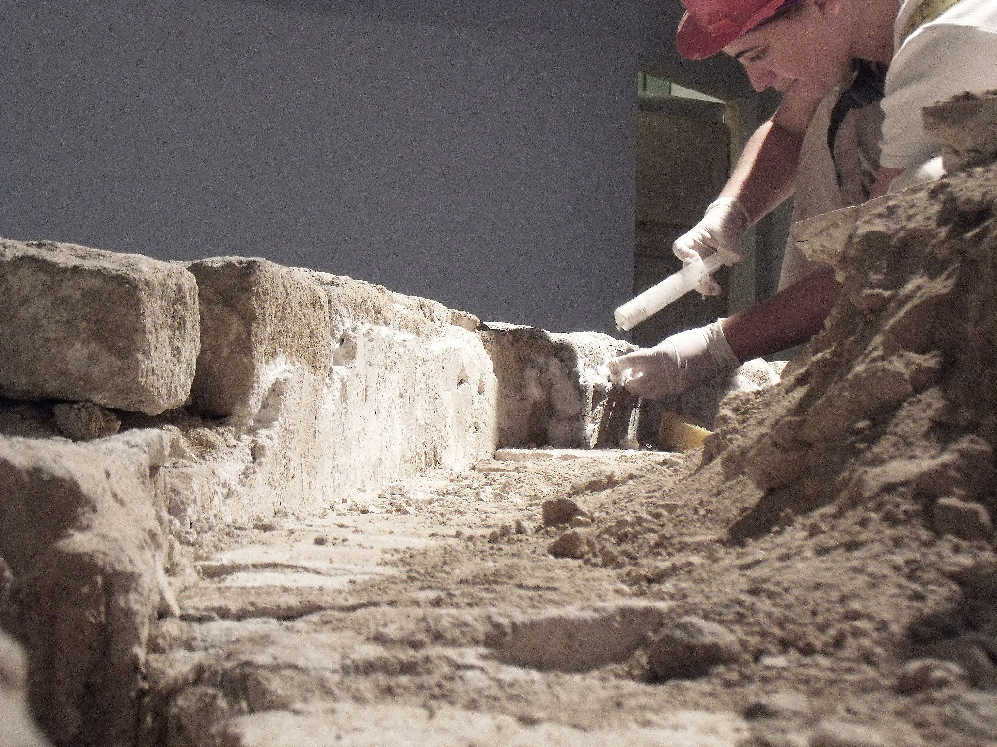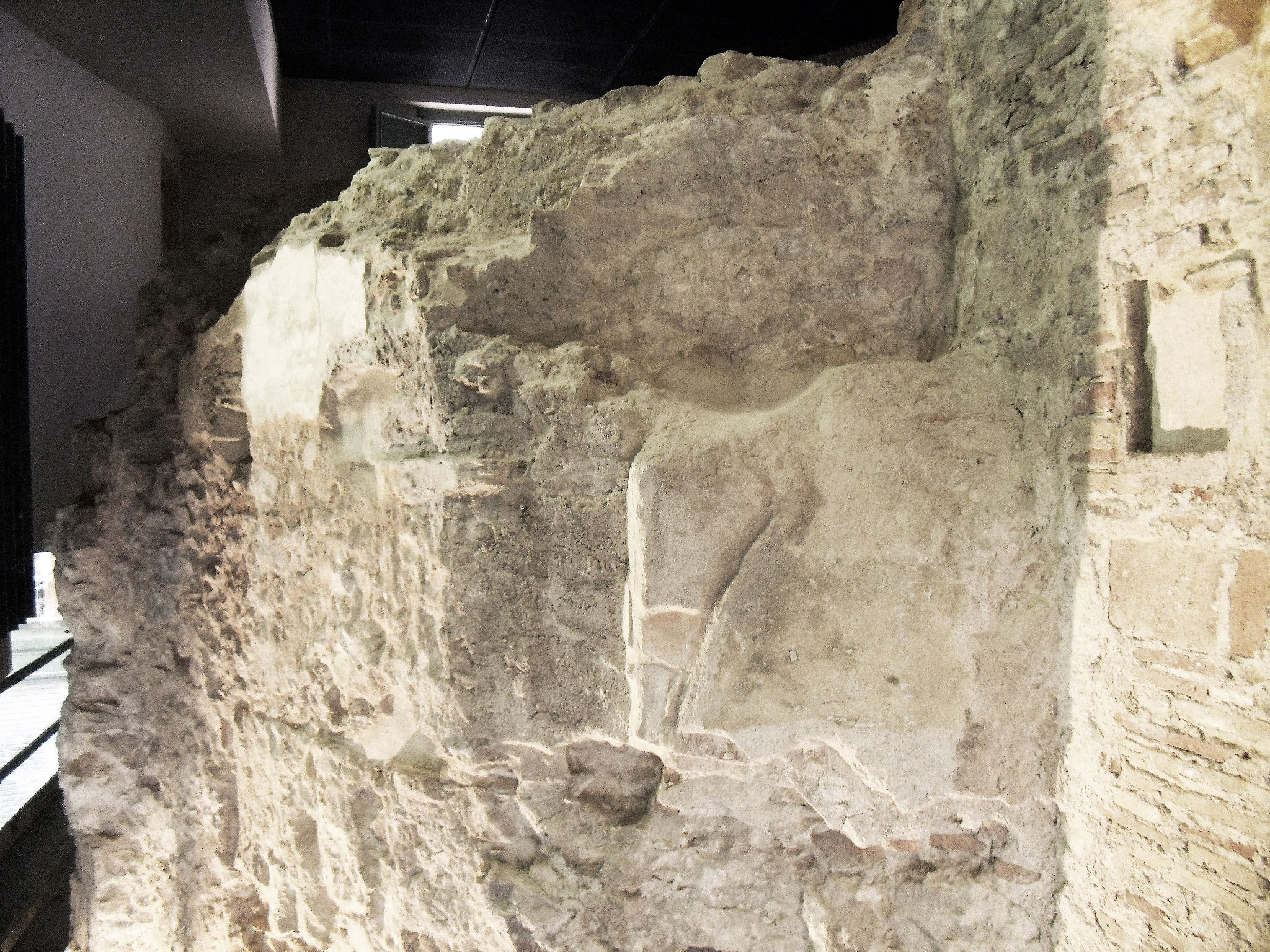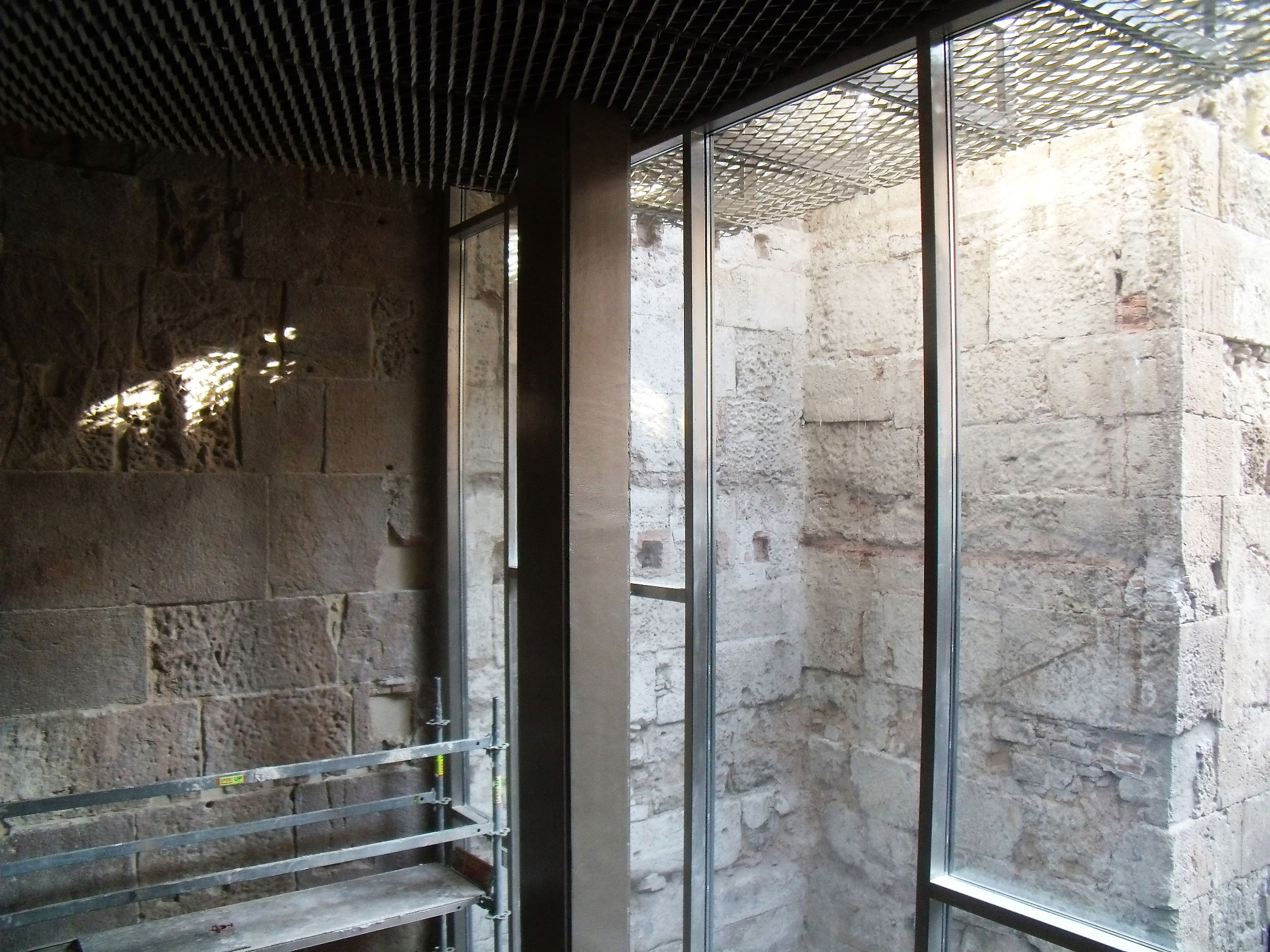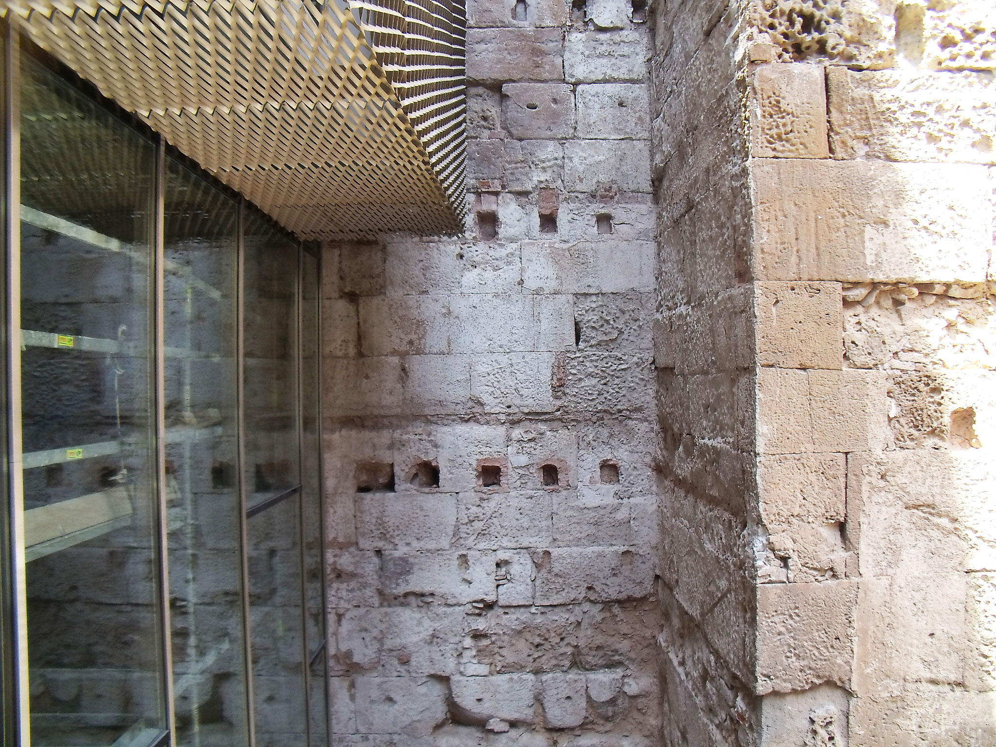 Restauració de la muralla romana de Barcelona (segles I aC i segle IV) en el tram de Regomir; a l’actual Centre Cívic Pati Llimona, palau medieval que va ser construït sobre les muralles.